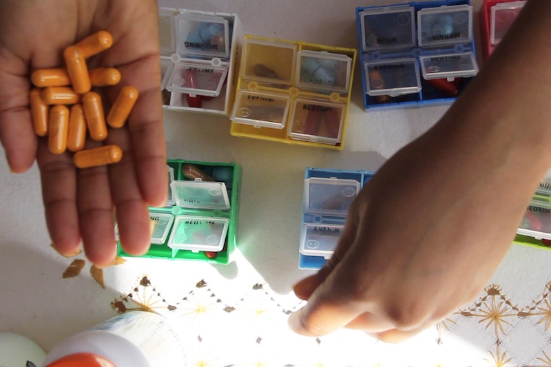 Crip Time—a meditation on the task of organizing weekly medications and pills—explores cinematic time and the essential work of care. “It is a durational work, and duration plays a large part in my practice,” says Lazard. “My own interests in terms of the medium of video have a lot to do with video’s capacity to represent real time, a kind of duration that matches with our lived experience. I think it is really different from how we normally relate to video or cinema, in which we’re often put into a temporal pace that is accelerated and manipulated. And I think slowness has a lot to do with the mundane in some ways because our lives are made up of myriad slow experiences that are the foundation of keeping us alive.”