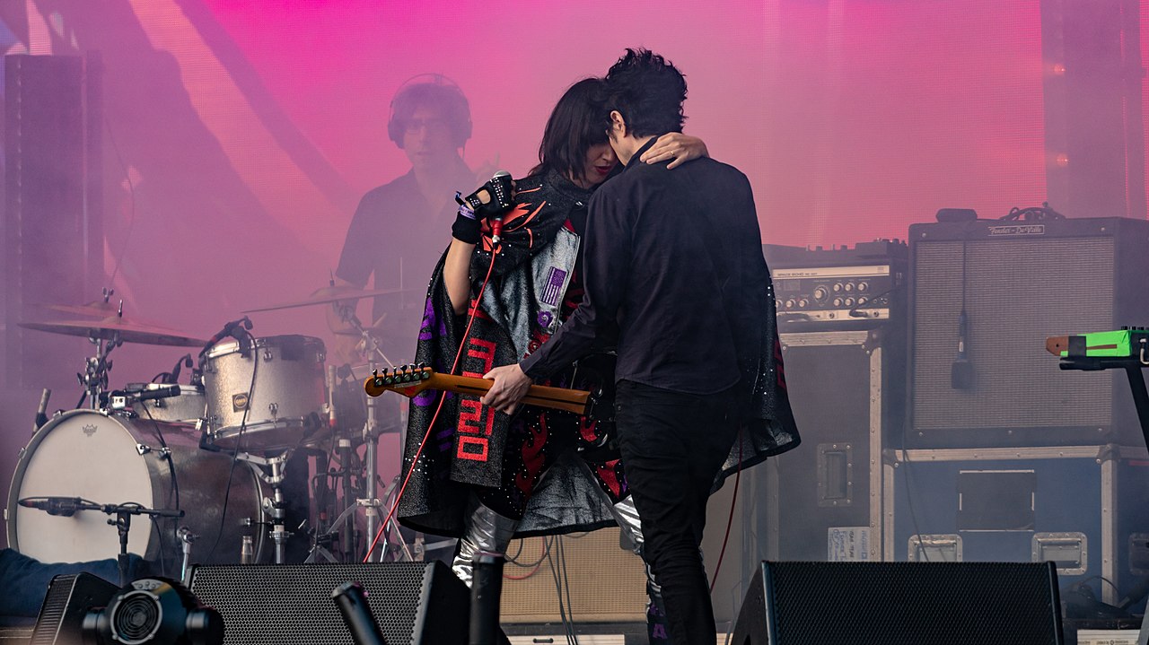 Photo: Yeah Yeah Yeahs. Karen O and Nick Zinner ’96 in foreground; Brian Chase in the background. Image: Raph_PH, cc-by-2.0