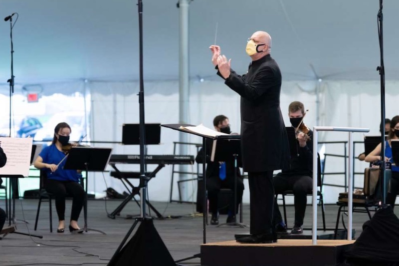 Photo: Leon Botstein leads The Orchestra Now in the first program of the Bard Music Festival’s livestreamed concert series “Out of the Silence.” Photo by Karl Rabe