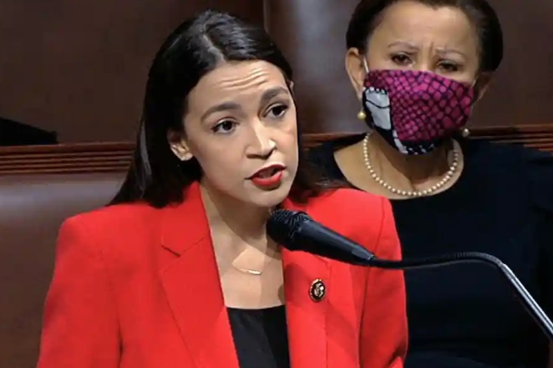 Photo: US Representative Alexandria Ocasio-Cortez, “without particular outrage or emotion, pronounces three words that explode like smart bombs in the decorous House.” Photo courtesy AP