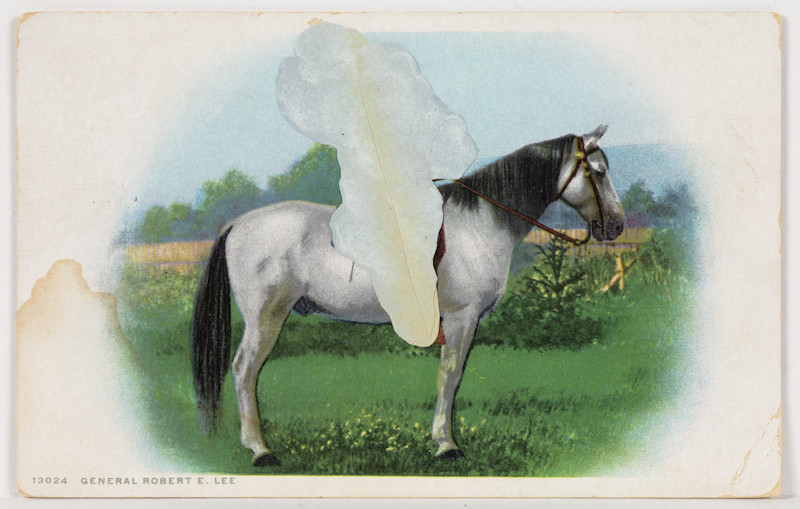 “Whether on reclaimed ledger paper or vintage picture postcards, the images he constructs are something like found details themselves—singular and mysterious, if occasionally a little on the nose,” writes Will Heinrich.