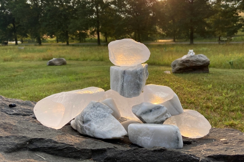 Photo: Martha Tuttle, “A stone that thinks of Enceladus” (2020), installation. Photo by Jeffrey Jenkins, courtesy the artist and Storm King Art Center