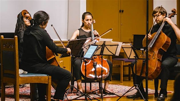 Photo: Bard Music West's Cello Ensemble performing Grażyna Bacewicz's Quartet for Four Cellos. Courtesy of Bard Music West
