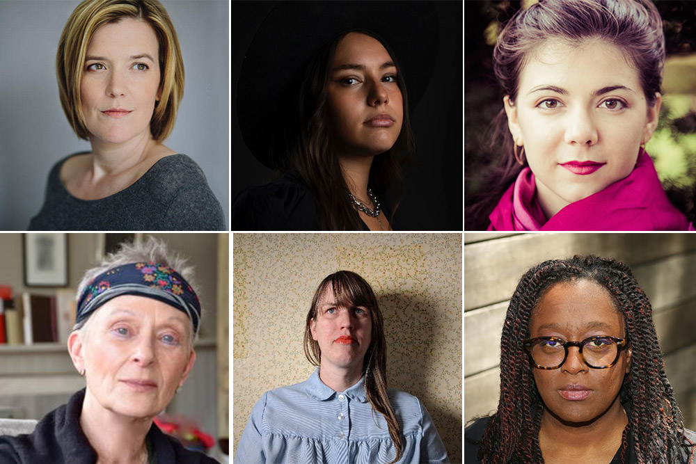 Photo: Clockwise from top left: Erika Switzer, Suzanne Kite, Lucy Fitz Gibbon, DN Bashir, Sarah Hennies, and Ann Lauterbach.