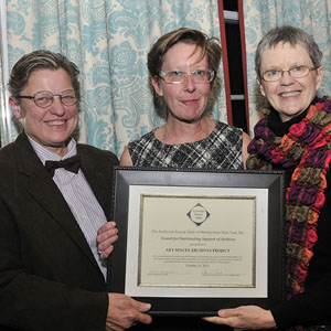 The library and archives at the Center for Curatorial Studies (CCS Bard) received the 2012 Award for Outstanding Support of Archives by the Archivists Round Table of Metropolitan New York for the center's work on the Art Spaces Archives Project.