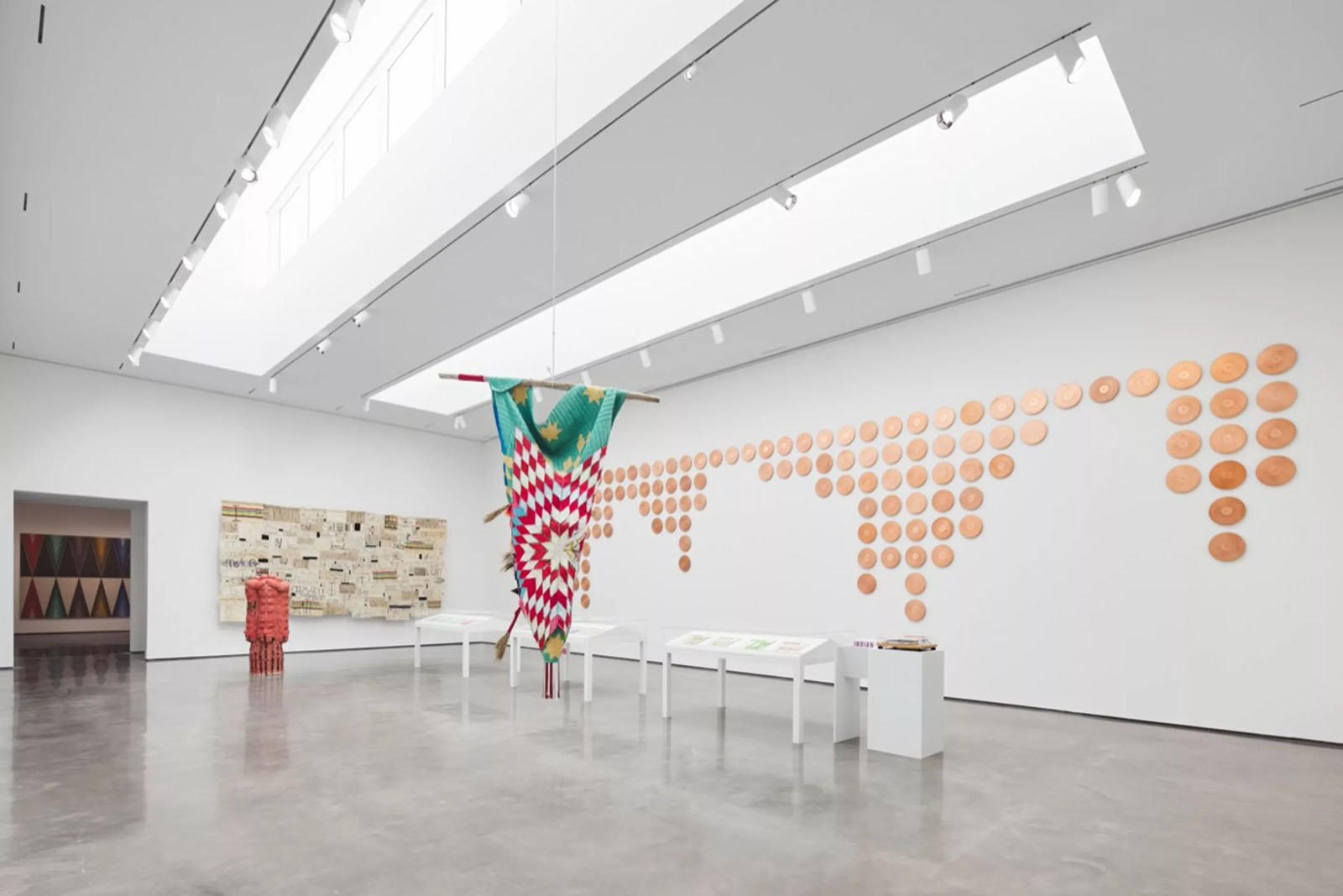 Jeffrey Gibson, artist in residence at Bard College, is showcasing works in several exhibitions this summer, including solo shows at the Aspen Art Museum and Jessica Silverman Gallery in San Francisco. He is also featured in Indian Theater: Native Performance, Art, and Self-Determination since 1969, a standout group show at the Center for Curatorial Studies at Bard’s Hessel Museum of Art. His exhibitions are among a number of shows highlighting Indigenous American artists this summer. “These shows, as well as several thematic group exhibitions, create a moment of recognition for contemporary Indigenous art, providing historical context for the work being made today,” writes Annabel Keenan for Artsy. “I am glad to see a greater recognition that all Indigenous artists are unique and come from different cultural perspectives,” said Gibson, who is Mississippi Choctaw/Cherokee. “I see an increase in the understanding of Indigenous makers, their intentions and their cultural perspectives, but there is so far to go. I’d like to think that these artists are being treated more as individuals rather than representative of a large and more general Indigenous community.”