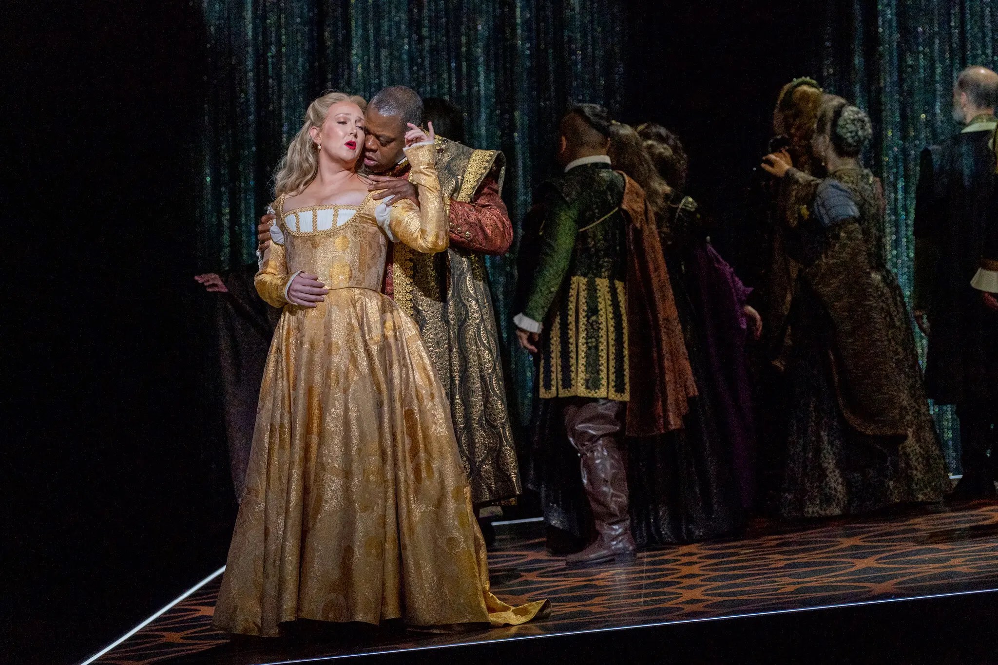 Photo: Saint-Saëns’s Henri Vlll, directed by Jean-Romain Vesperini, at Bard SummerScape. Alfred Walker (right) sings the title role, and the mezzo-soprano Lindsay Ammann is Anne Boleyn. Photo by Stephanie Berger